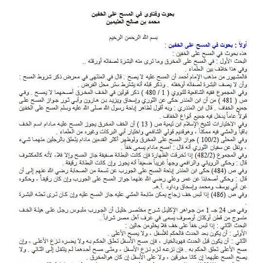 بحوث وفتاوى في المسح على الخفين ( الشيخ ابن عثيمين رحمه الله تعالى ) 2014-09-03