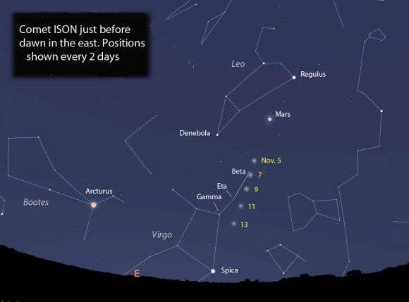 مذنب أيسون في حالة هيجان و إنفجار لمعانه زاد بواحد على سلم الإضاءة في 24 ساعة