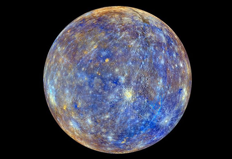 هذه الصورة تعتبر أوضح صورة أُلتقطت لكوكب عطارد، حيث يمكن أن ترى بوضوح التعقيدات الموجودة على السطح الخارجي والخطوط.