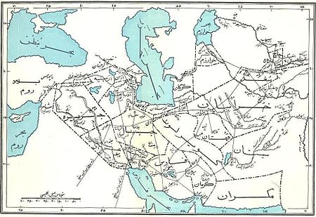 خارطة لإقليم الأحواز كما عرفهُ المُسلمون، من كتاب مسالك الممالك للإصطخريّ.