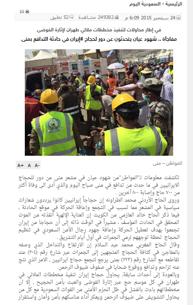 تأكيداً لانفراد ” المواطن”.. الشرق الأوسط تنقل عن مسؤول إيراني: حجاجنا وراء #تدافع_مشعر_منى