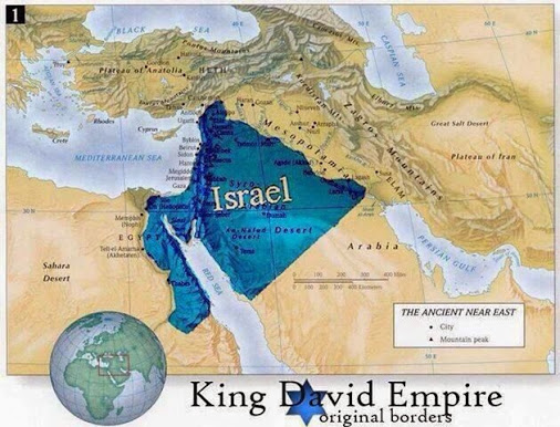 تداول عدد من النشطاء الإسرائيليين على موقع التواصل الاجتماعى "فيس بوك" خريطة عما وصفوه بـ"مملكة إسرائيل الكبرى - مملكة داود"، وتضم الخريطة لإسرائيل الكبرى مصر وفلسطين والأردن وسوريا ولبنان وجزءا من العراق والسعودية.